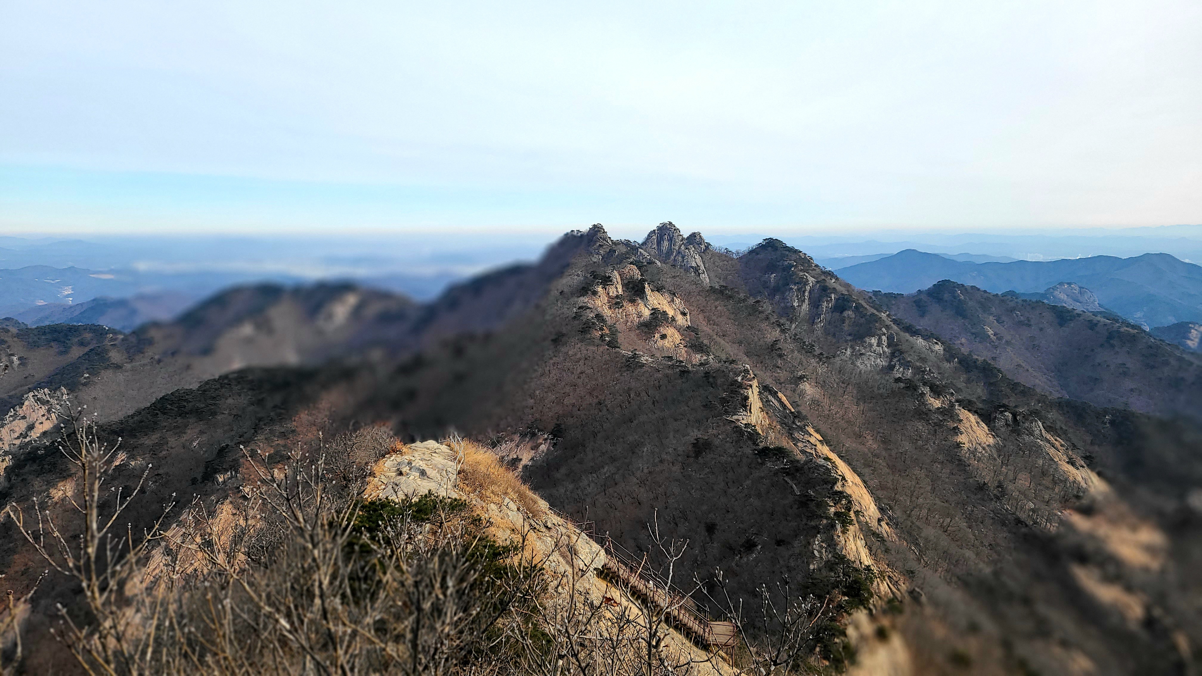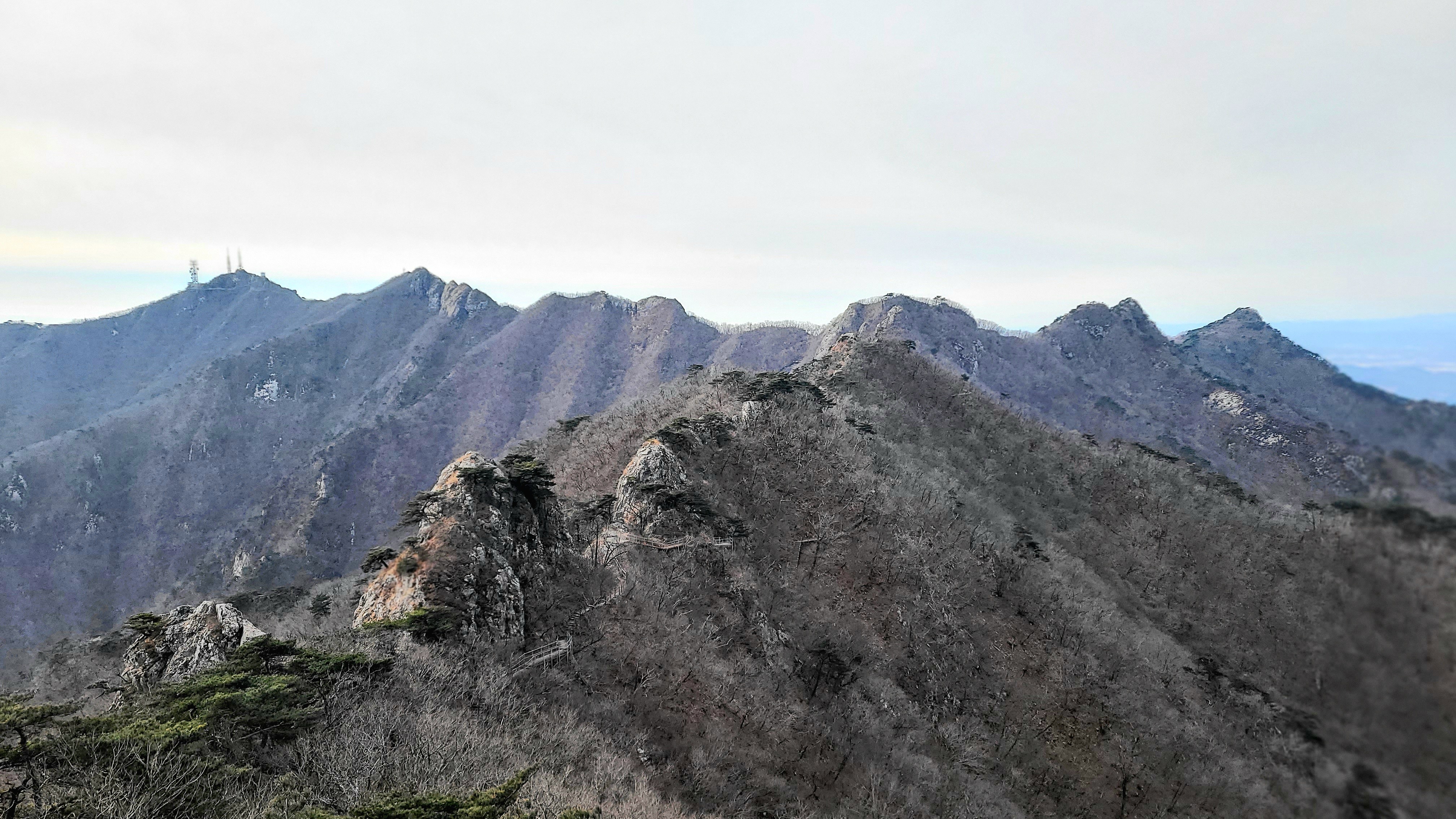 보온병에 담아온 뜨거운 생강차를 마시며 추위에 맞섰다. 휴일임에도 바람은 쉬고 싶지 않은 것 같았다. 그 바람을 이겨내는 방법은 빨리 하산하는 방법밖에 없었다. 급경사지의 철제계단을 내려오고 암반과 암반사이의 좁은 등산로를 지나면서도 절대로 멈추지 않았다. 남매탑이 있는 능선의 반대편으로 하산할때까지는 계속 움직여야만 했다. 그만큼 바람은 매섭게 불었고 차가웠다.