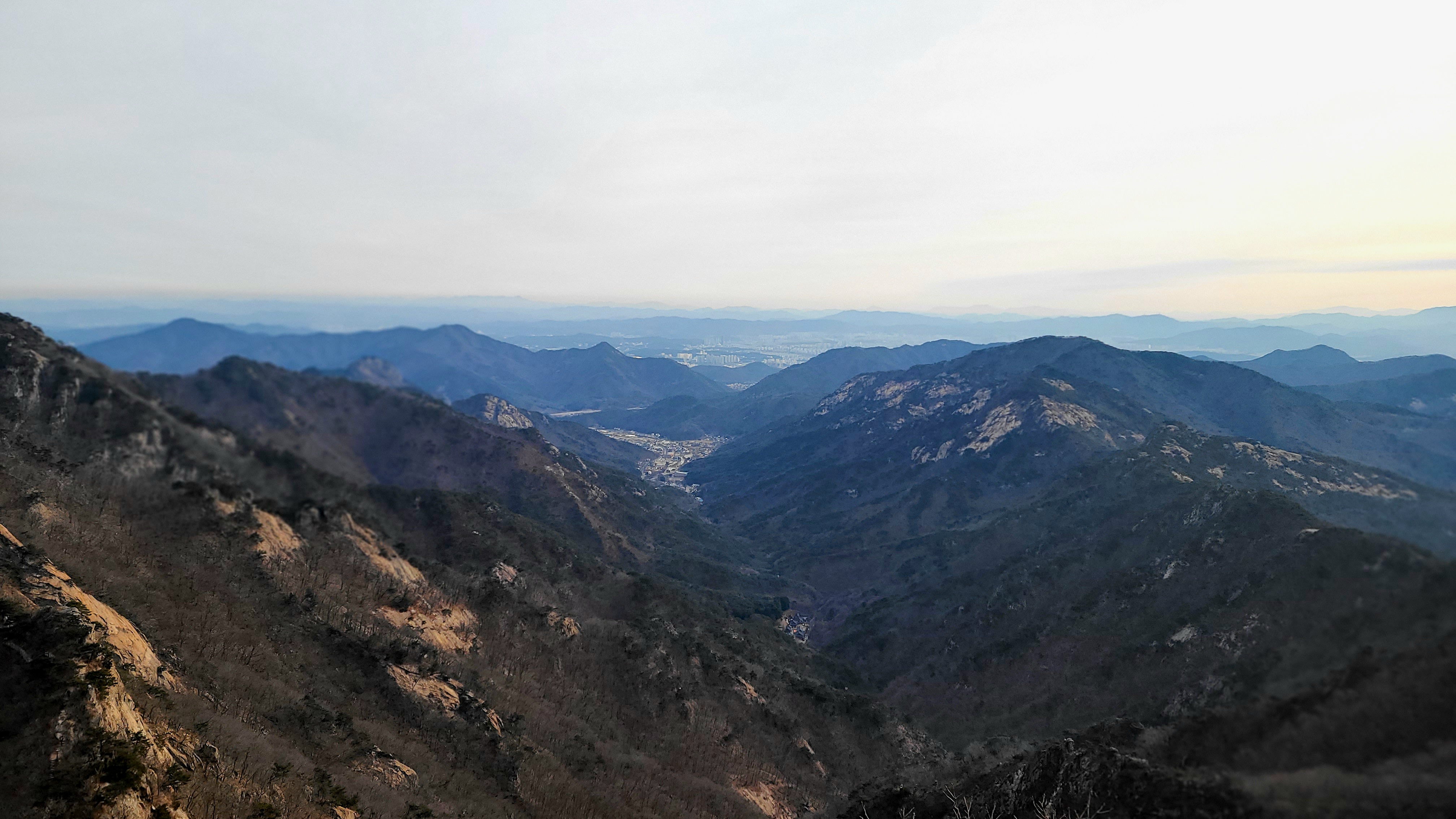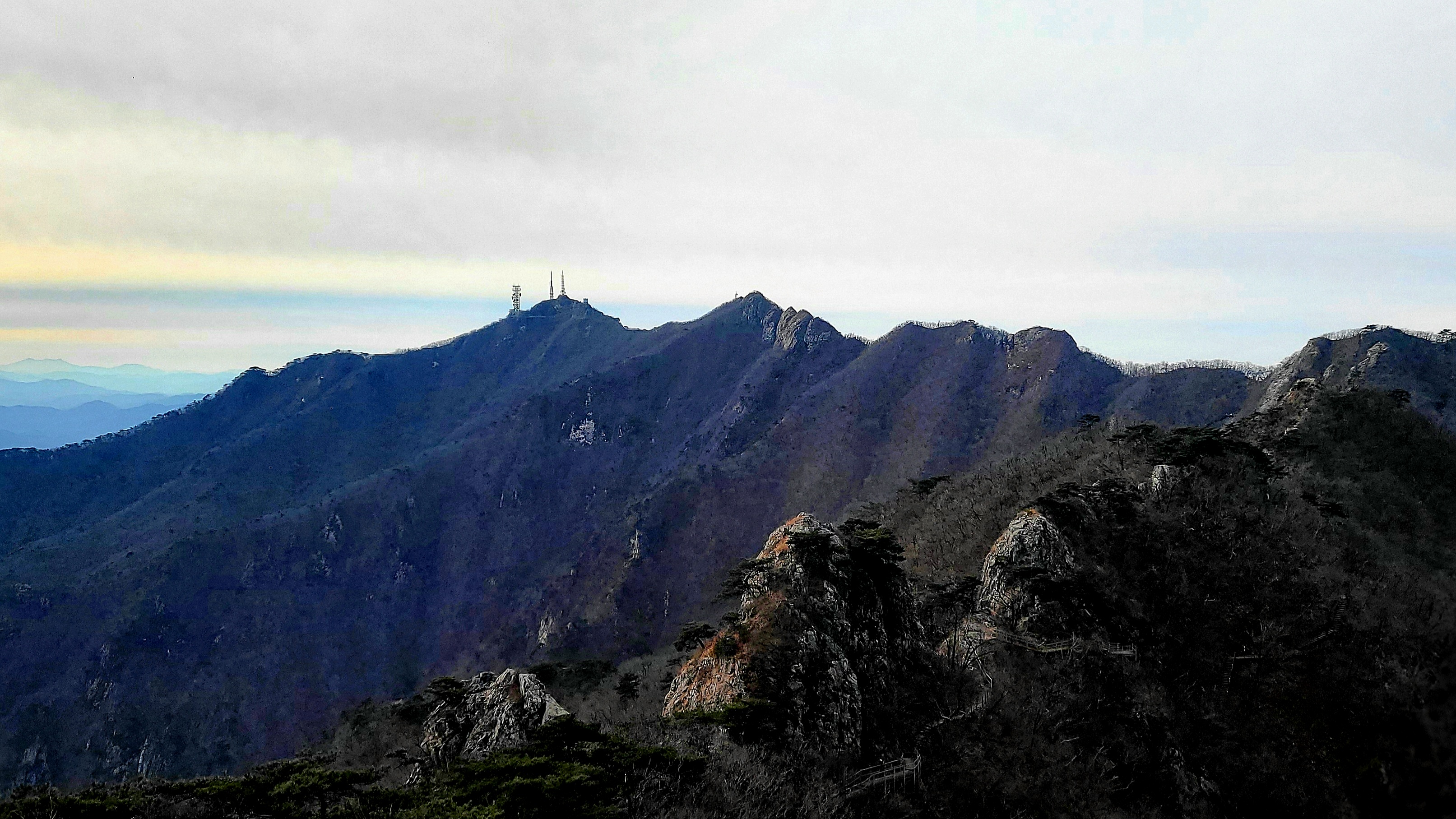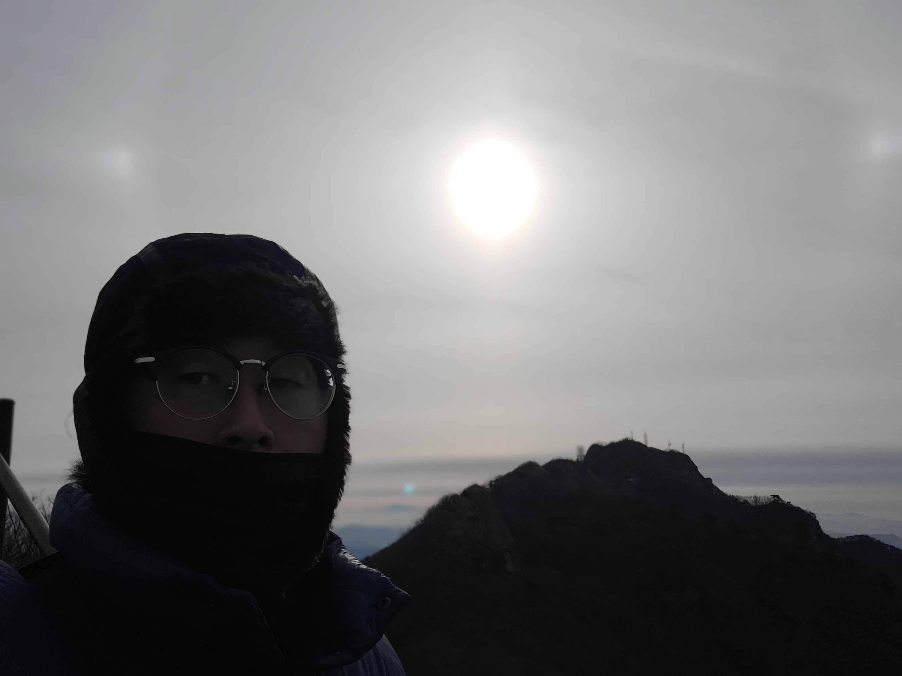 내려오는 사람들이 많았지만 군데군데 올라가는 사람들도 있었다. 좁은 등산로에서 그들을 한명 두명 제쳐가면서 부지런히 걸었다. 땀이 나지는 않았지만 오르막을 오르는 동안 추위는 느껴지지 않았다. 황적봉과 쌀개봉사이의 산맥을 넘어가는 해와 마주하기도 했다. 그렇게 한시간이 흘렀을 때 난 관음봉 정상에 서 있었다.